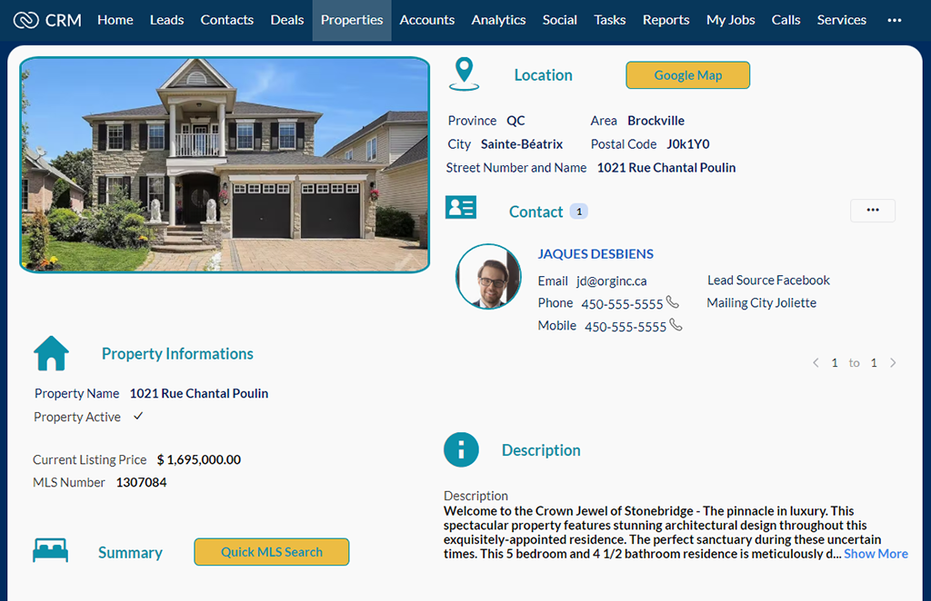 • Centralized Contact Management: Store all client and lead information in one place, including communication history, property preferences, and deal stages, ensuring easy access and personalized service.