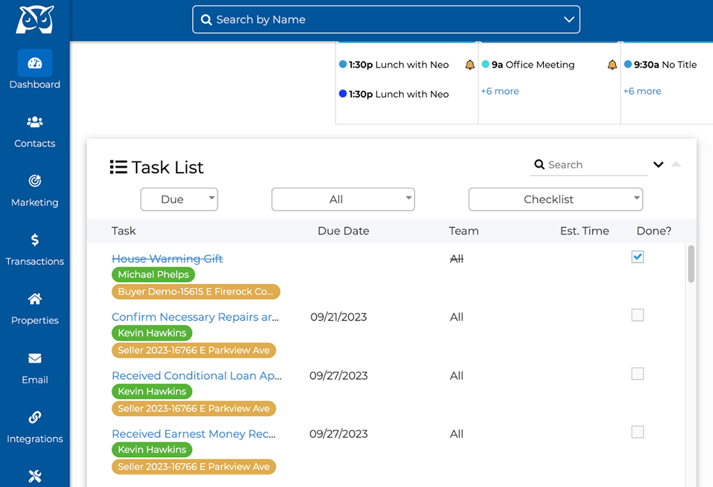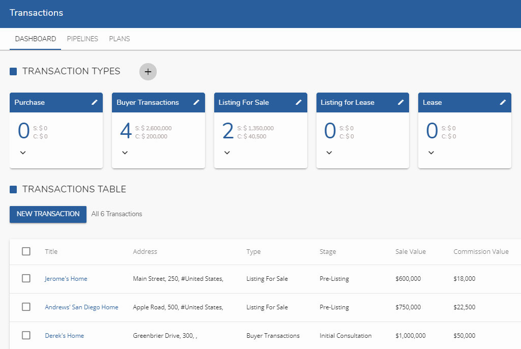 • Lead Management: Capture leads from websites, social media, or MLS platforms, with automatic assignment to agents for quick follow-up.
