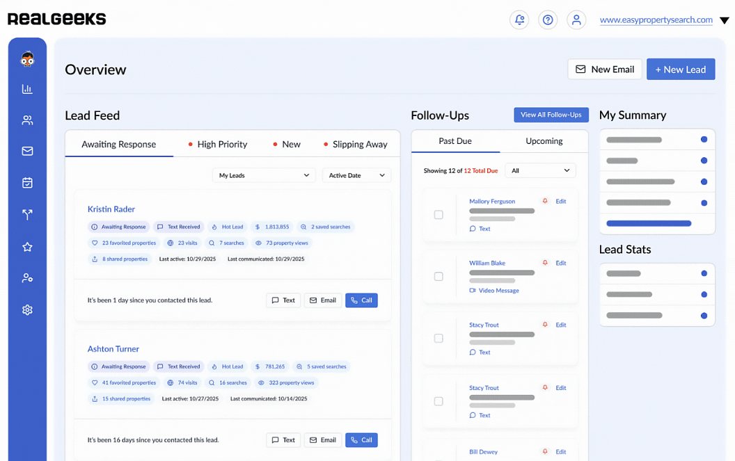 Real Geeks is a CRM platform that combines lead generation with website tools, designed for real estate professionals focused on online marketing and client engagement. It caters to agents and small teams seeking an integrated solution for the best CRM for real estate agents. With features like IDX websites and AI-driven texting, Real Geeks stands out among real estate CRM systems for those prioritizing digital lead capture and follow-up.