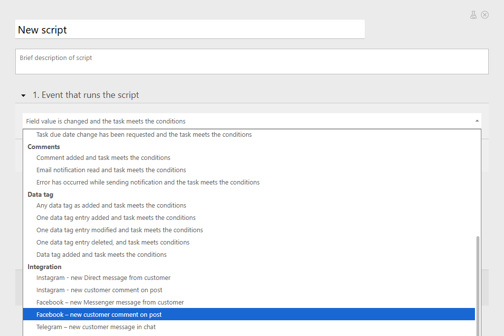 Before, to launch a script from a social network or messenger event, you had to add conditions inside the script itself. Now, these have their own separate events.