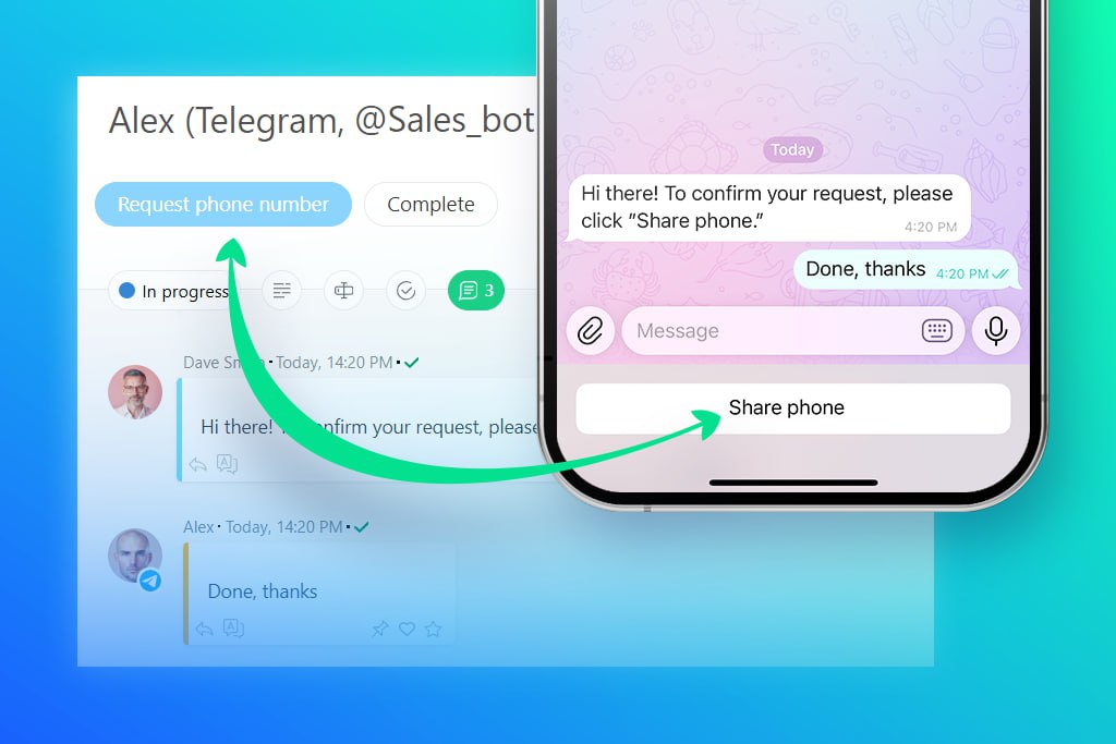 • The client taps the button and messenger automatically sends the verified number to Planfix.