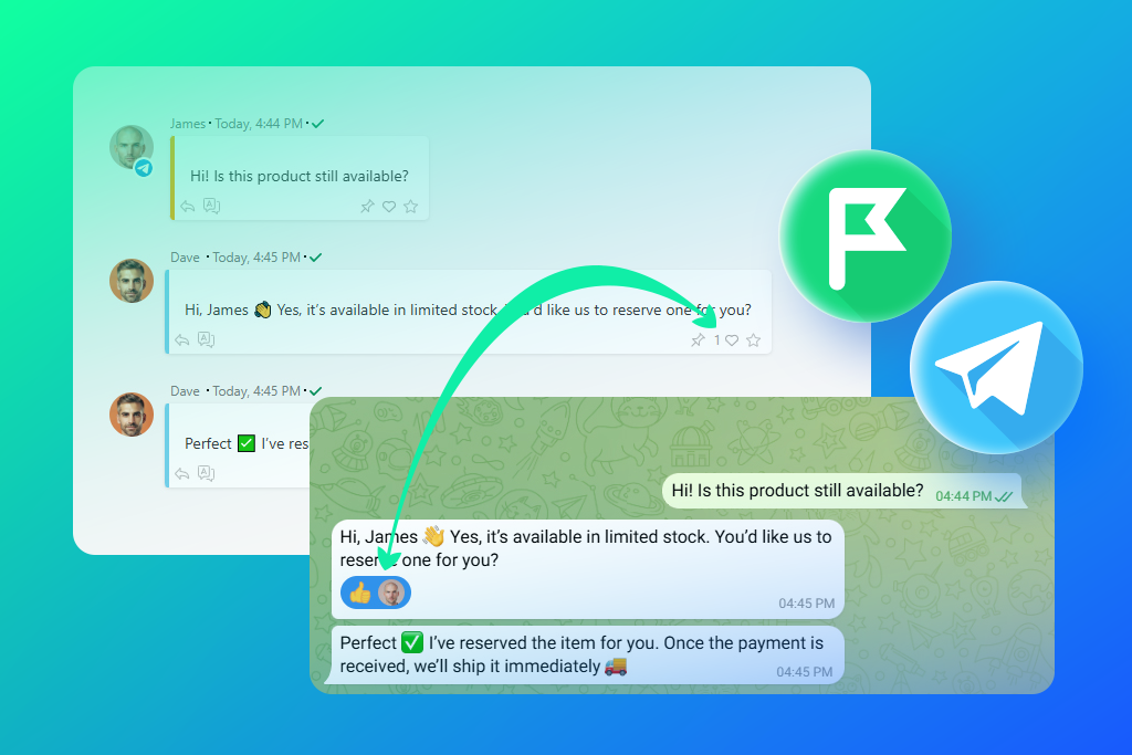 We’ve fixed that! Now, positive reactions on Telegram show up in Planfix, and your Planfix likes are also visible to your Telegram contacts.