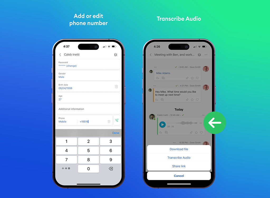 - We’ve revamped the interface for adding and editing phone numbers, plus improved how you view and add files.