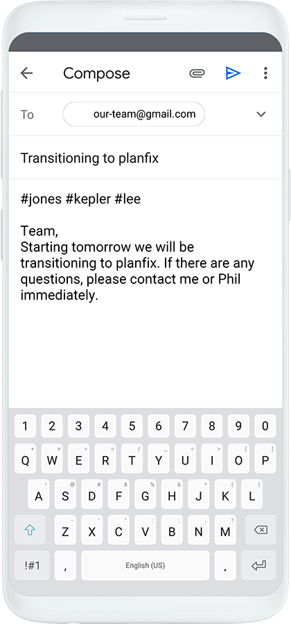Planfix - CRM software with email integration. You can use employees' personal email addresses or conduct all communication from a single, non-personalized email address — all at your own discretion.