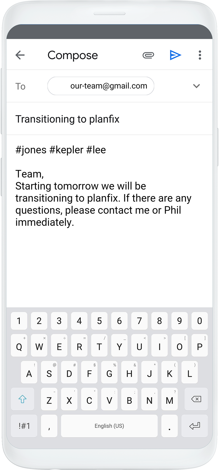 CRM and email integration allows you to connect certain employees to tasks as assignees — such as employees whose last names are mentioned in the subject line or body of emails. This lets you seamlessly and easily create tasks from client emails and link the colleagues who need to process them.